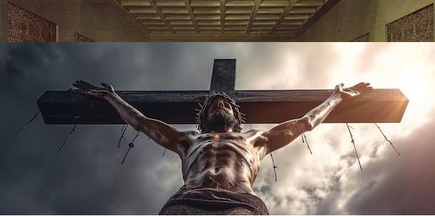 À ce moment-là, le visage de Jésus, le Fils du Roi tout-puissant, fut soudain recouvert d'une pâleur fantomatique, tandis que ses yeux s'obscurcissaient sous l'ombre de la mort. Puis, d'une voix forte, il s'écria : « Tout est consommé ! » Et Il a rendu Son esprit...