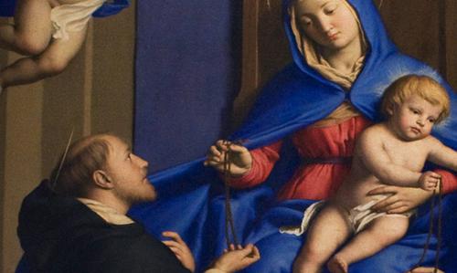 Dès sa naissance au XIIIe siècle, la famille religieuse fondée en France par saint Dominique (après 1170-1221), ou Ordre des Prêcheurs, témoigne d’un lien particulier avec la Mère de Dieu. À partir du XVe siècle, la prédication du Rosaire donne un nouvel élan marial au monde chrétien.