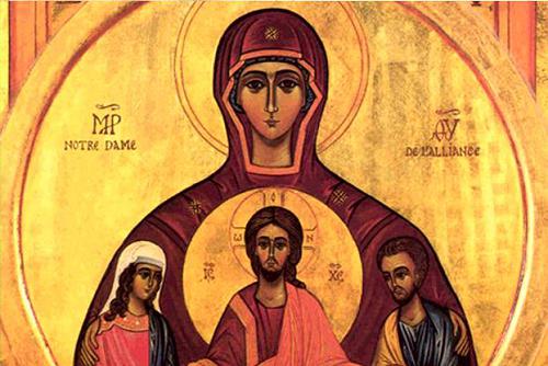 Irénée est l’un des premiers à évoquer la Vierge et son rôle, faisant un parallèle entre Ève et Marie : « De même que celle-là avait été séduite de manière à désobéir à Dieu, de même celle-ci se laissa persuader d’obéir à Dieu, afin que, de la vierge Ève, la Vierge Marie devînt l’avocate ; et, de même que le genre humain avait été assujetti à la mort par une vierge, il en fut libéré par une Vierge, la désobéissance d’une vierge ayant été contrebalancée par l’obéissance d’une Vierge. »