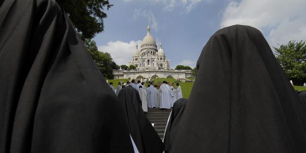 Une bénédictine du Sacré-Cœur de Montmartre : Nous sommes installées de manière fixe au Sacré-Cœur depuis 1995. Notre rôle concerne l’animation matérielle et spirituelle des lieux de prière. Concrètement cela recouvre les célébrations liturgiques, le chant de l’office divin quatre fois par jour. Nous chantons le matin, à midi, les vêpres et les complies. Nous sommes aussi chargées de l’animation des messes, des temps de prière, des veillées, tout cela dans le but de faire participer le peuple de Dieu à la liturgie de l’Église ! Par nos chants, nous invitons les personnes à prier la liturgie des heures avec la communauté. Certains viennent très fidèlement, que ce soit le matin pour les laudes, à 8 heures, avant d’aller au travail. Ou pour les complies et la messe de 22 heures.
