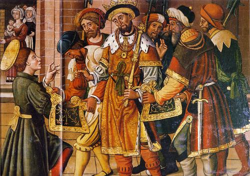 Eloi, homme des VI° et VII° siècles (né vers 588 à Chaptelat et mort à Noyon le 1° décembre 660), ne connaissait pas encore tous ces raffinements ; du moins, savait-il bien son métier auquel l'avait formé un certain Abbon, de Limoges. Bientôt pourtant il monta l'exercer à Paris et se mit au service de Bobon, le trésorier royal. Un jour le roi Clotaire II vint lui commander un trône d'or incrusté de pierreries, lui fournissant très largement à cette fin le métal précieux nécessaire. Le jeune orfèvre se mit donc au travail et usa des maillets et des bigornes, emboutit et souda, martela et cisela, ragréa et brunit. Mais une fois terminé le siège royal du mérovingien, demeurait encore disponible une quantité d'or. Aussi l'honnête Eloi fabriqua-t-il un second siège qu'il dora avec ce qui restait de métal précieux et, lorsque le souverain reçut livraison de sa commande, quelle ne fut pas sa surprise de recevoir deux... dagoberts au lieu d'un simple trône.