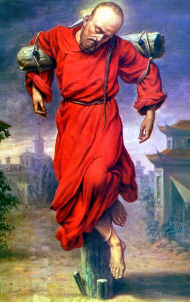 Avec sept bandits, le missionnaire fut conduit sur une hauteur appelée la " Montagne Rouge ". Les bandits furent tout d'abord exécutés, puis Perboyre se recueillit en prière, à l'étonnement des spectateurs.