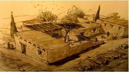 Nazareth, une maison du 1er siècle. Au premier plan, la maison telle qu’on peut l’imaginer, avec une cour sur la droite et certainement d’autres pièces ou maisons, appuyées sur la même roche.