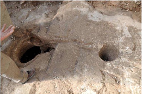 Fouilles archéologiques : des citernes et des caches, creusées dans la roche.