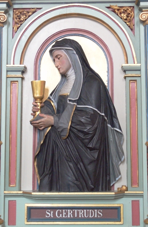 Mémoire de sainte Gertrude, surnommée la Grande, vierge moniale. Donnée au Seigneur par ses parents dès l’âge de cinq ans dans l’abbaye cistercienne d’Helfta en Saxe, elle y passa toute sa vie, vouée à la solitude du cloître et aux belles-lettres avec tout son cœur et toute son énergie. Sans renoncer au travail intellectuel, elle avança de manière admirable sur le chemin de la perfection, dans la prière et la contemplation du Christ en croix, et mourut le 17 novembre 1301.