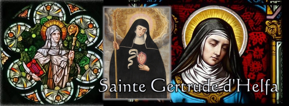 A cinq ans, la petite Gertrude qui va devenir Gertrude la Grande est confiée pour son éducation au monastère bénédictin de Helfta en Saxe. Elle y trouve une atmosphère de vie spirituelle et intellectuelle intense. Elle a aussi la chance d'y avoir comme maîtresse et conseillère la grande Melchtilde de Hackeborn. Elle s'épanouit dans ce milieu qu'elle ne cherchera pas à quitter. En grandissant elle devient une moniale d'une intelligence rayonnante et d'une vaste culture. Si sa santé fragile la tient souvent éloignée du chœur, sa santé mentale, au contraire, reflète un grand équilibre. A partir de 1291, elle commence à être favorisée de visions qu'elle consignera dans cinq livres. Son expérience mystique s'appuie sur les mystères de la liturgie et reste totalement dépourvue de dolorisme. Elle fait une large place au Christ et tout particulièrement au Sacré-Cœur, "où est enclose toute la vertu de la Divinité." Elle oriente l'âme vers la contemplation sereine et la jouissance de la vie divine "dans la resplendissante et toute calme Trinité".